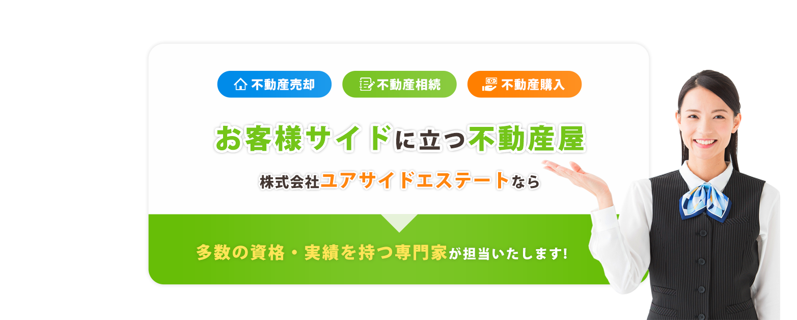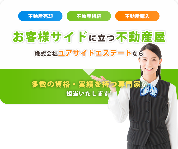 どこに相談したらよいのか分からない、不動産屋へ相談するのはちょっと心配、そんな皆様の真の味方になりたい。そんな思いで設立したのが「株式会社ユアサイドエステート」です。